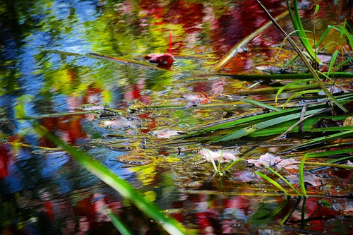 Animal tracks ~ After the rain ~ Reflection of forest in animal footprint